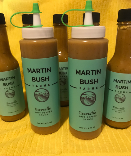 Escoville Hot Pepper Sauce is now currently available at Martin Bush Farms.