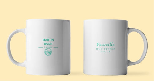 - Our unique logo designs printed on both sides (Martin Bush Farms / Escoville Hot Pepper Sauce)
